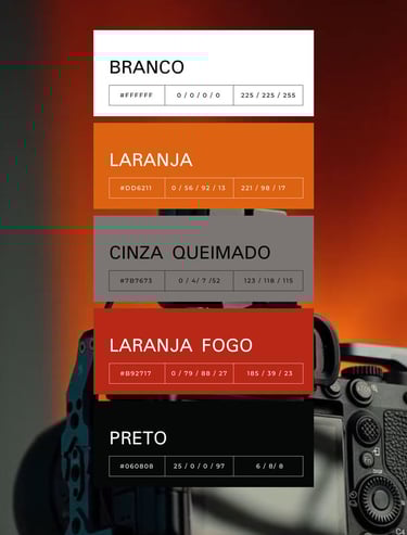 Paleta de cores estratégica — pensada para transmitir emoção e reconhecimento de marca.
